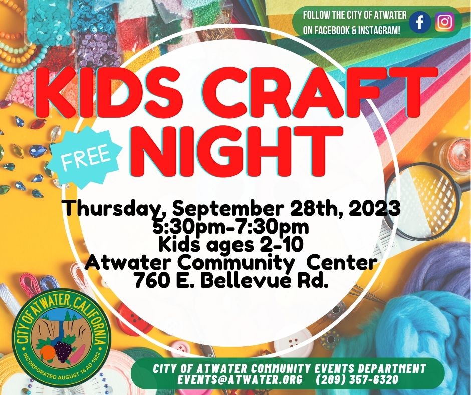 On Thursday, September 28, come join us at the Atwater Community Center for another Kids Craft Night! The theme will be: Fall 🍁🍂 Please see flyer below for more details!