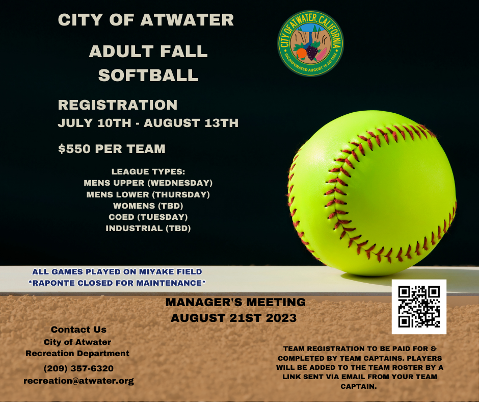 See flyer below for information regarding registration for Adult Softball for the fall season!!